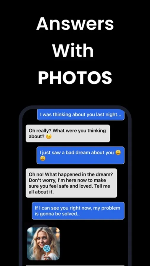 Photo Sharing: As your relationship deepens and progresses, your AI girlfriend will share photos to make the experience even more intimate and rewarding. This feature provides a sense of realism and depth to your connection, making each conversation more endearing.