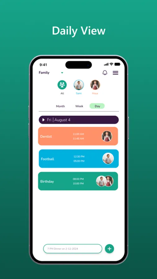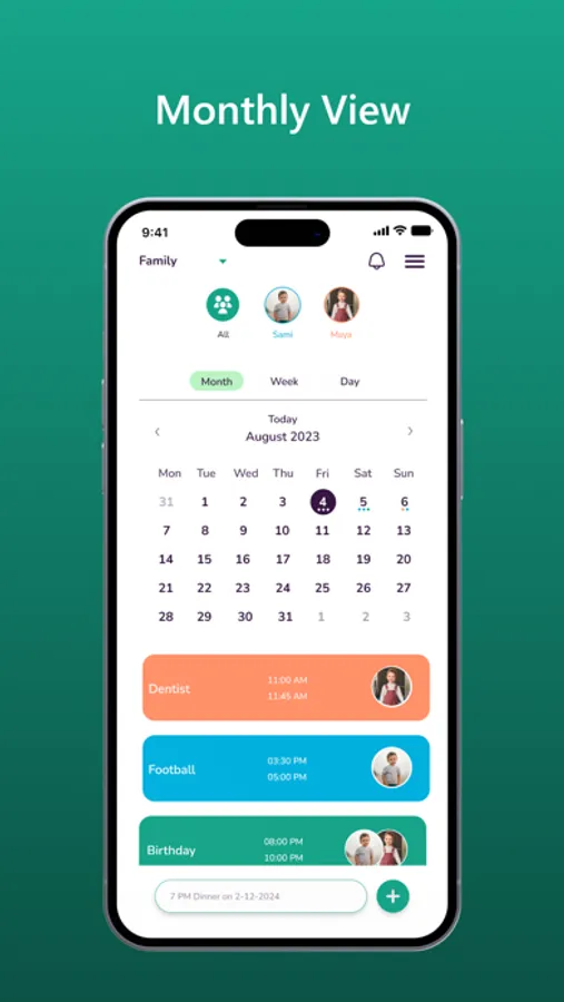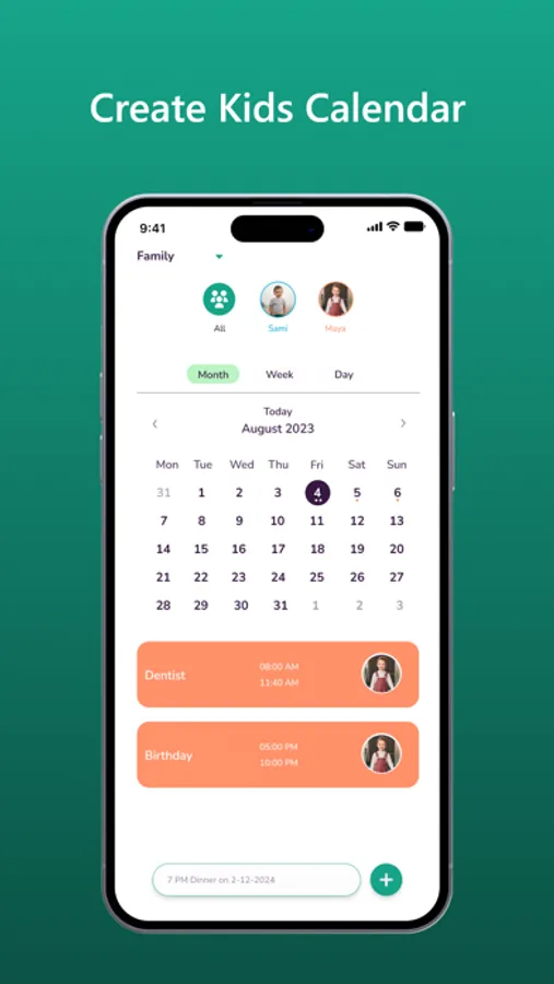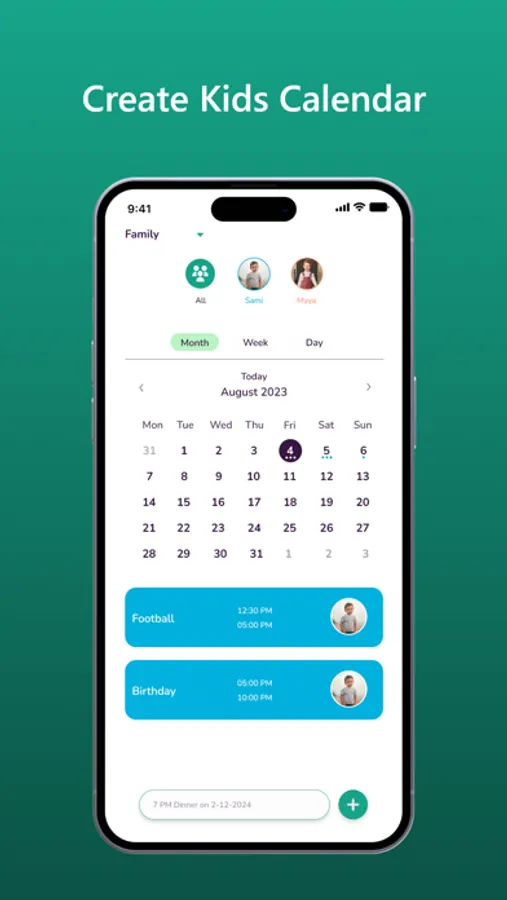 Reminders and Notifications: Set reminders and receive push and in-app notifications to track your kids throughout the day.