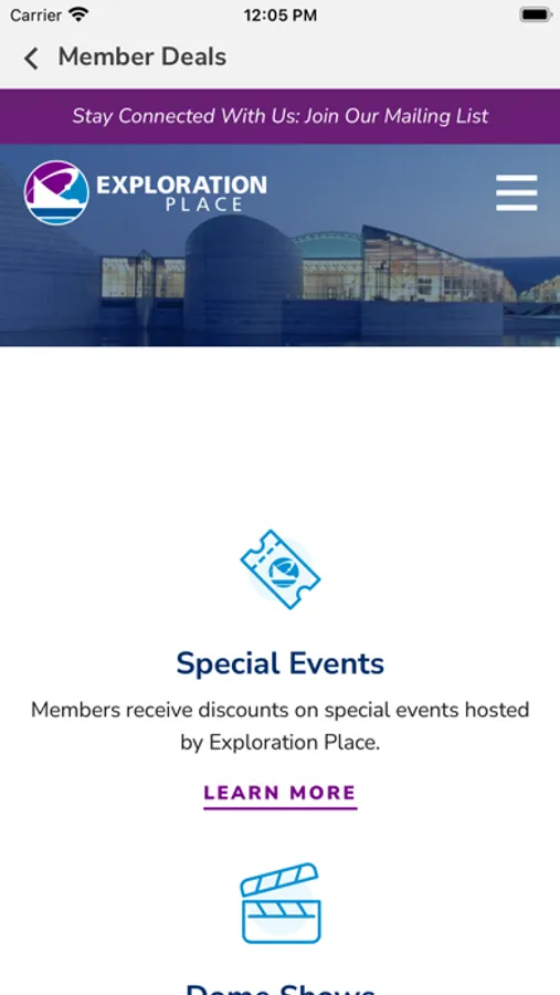 This app has been specifically developed for Exploration Place members, providing them with convenient access to their membership card and essential information. With a user-friendly interface, members can effortlessly retrieve their membership details and enjoy seamless exploration at their fingertips.