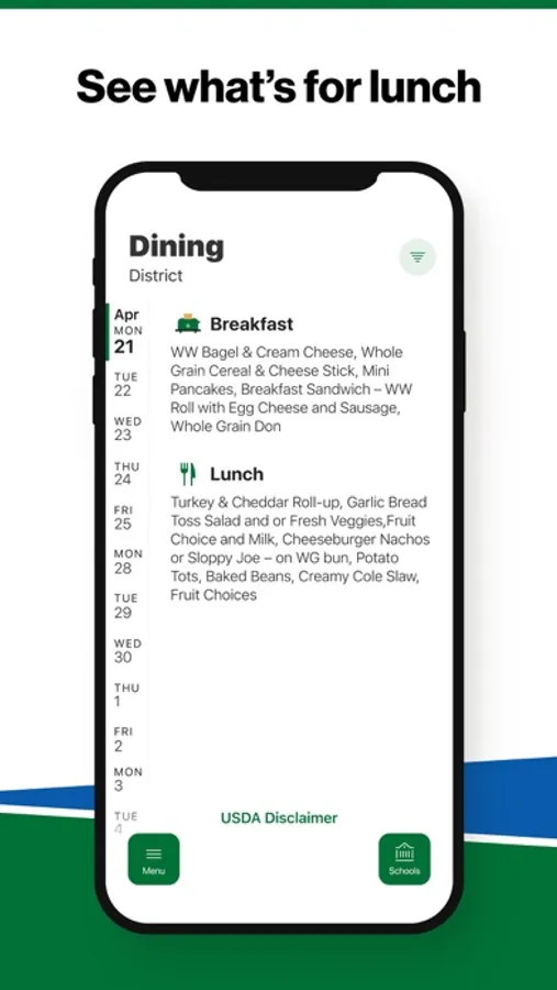 Within the dining section, you’ll find an easy to navigate, weekly menu, sorted by day and meal type.