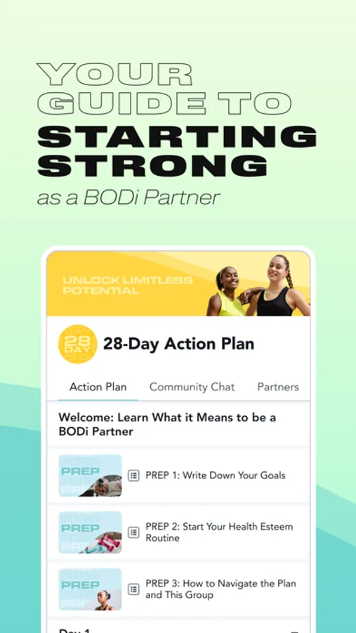The BODi Partners app is your resource for training and inspiration as you build your BODi business, featuring the new 28-Day Action Plan.