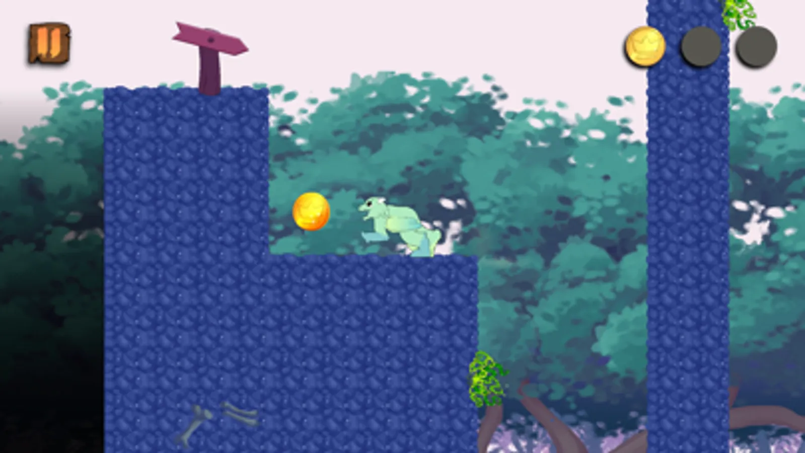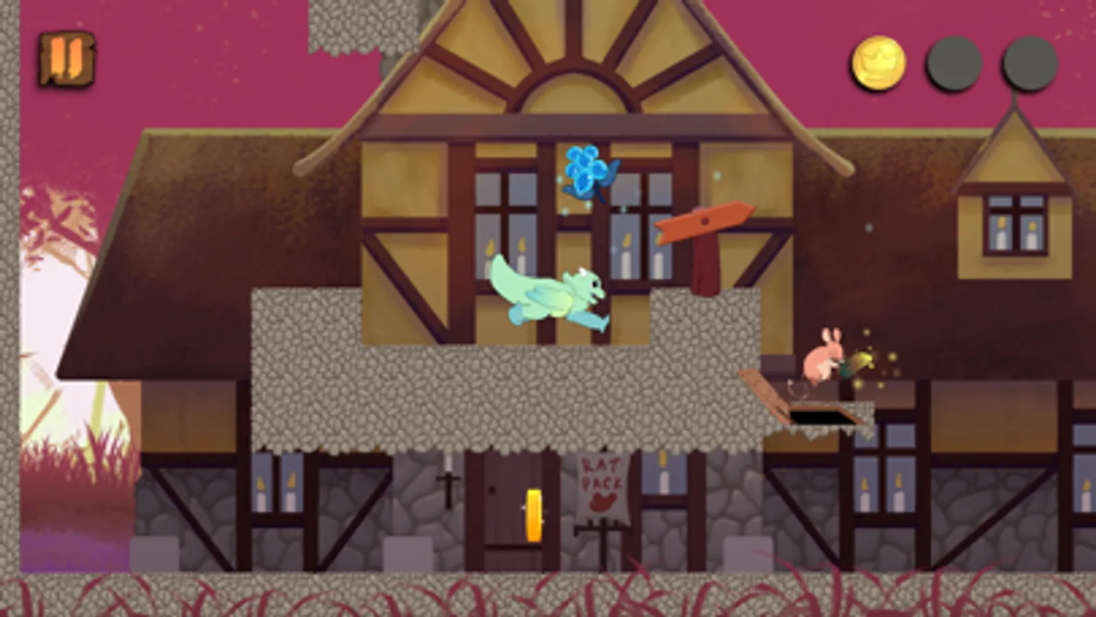 • One-button platforming mechanics