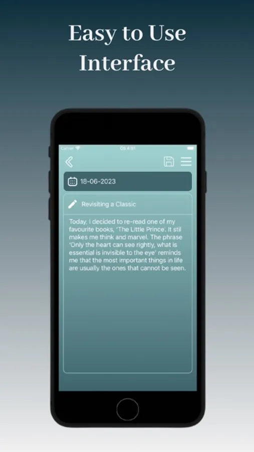 Simplicity is integral to My Diary: Secret Diary. Our user-friendly interface guarantees an effortless journaling experience, even for users who aren't tech-savvy. With its high-grade encryption feature, your private thoughts, cherished memories, and dreams find a secure haven where they can be safely stowed away.