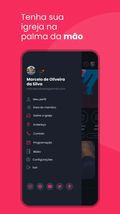 Recursos disponíveis no Aplicativo: Notícias, Agenda da igreja, Eventos, Conteúdos, Projetos, Transmissão ao Vivo e Módulo Ensino.