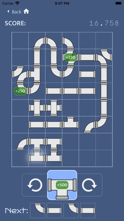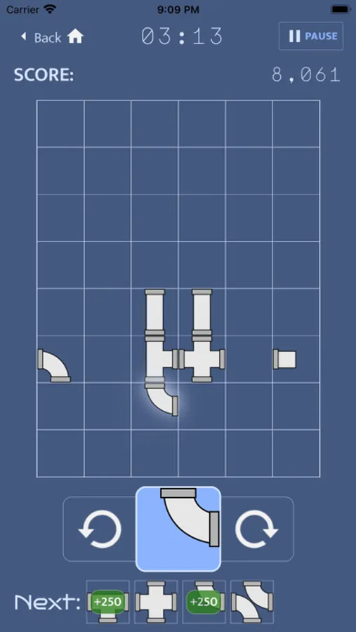 Untitled Topology Game is a game about plumbing where the object is to create as many self-connected "loops" sets of pipes as you can. New pipes drop into a queue TETRIS-style and you have to scramble to place them before time runs out. Meanwhile, special pipes like bombs and fires can keep you going by destroying pipes that are in your way. For an extra challenge, try timed mode and race against the clock to rack up as many points as you can in a given amount of time. And for a less stressful gaming session, puzzle mode has no timer and you can deliberate and play at your own pace.
