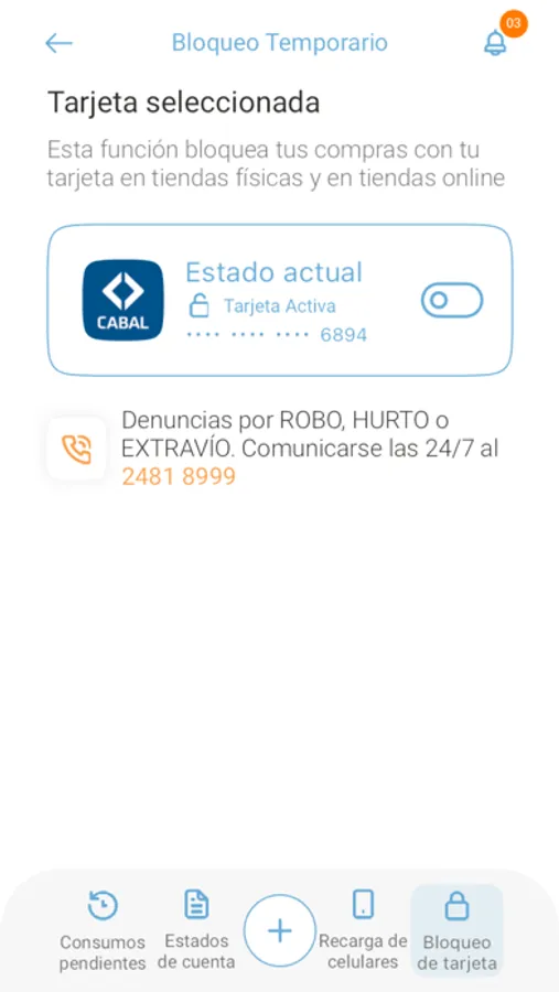- Bloquear/desbloquear temporalmente tu tarjeta