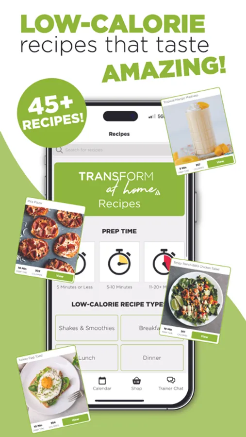 - Transform at Home has 46 easy and quick recipes that are low in calories, but packed with flavor! These recipes are budget-friendly and you can make them fast - in just 10 minutes! Every month, there are new recipes to try for breakfast, lunch, and dinner, plus snacks and shakes.
