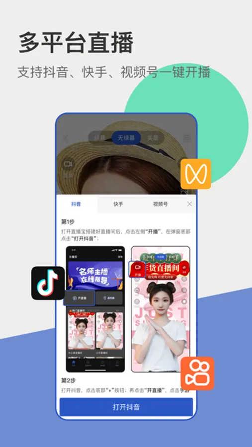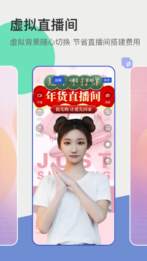 1、【虚拟直播间】:图片&视频背景随心切换,节省直播间搭建费用。