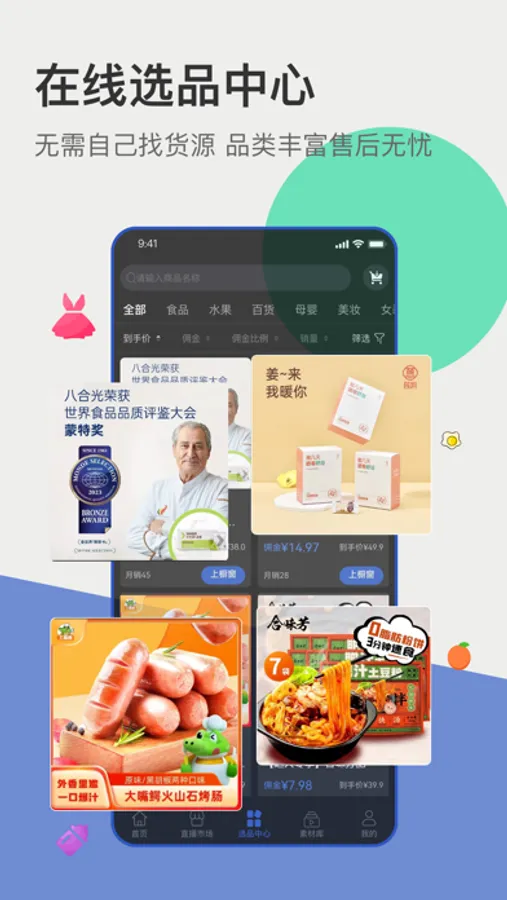 5、【选品中心】:支持在线选品,品类多样货量充足,直接开播。