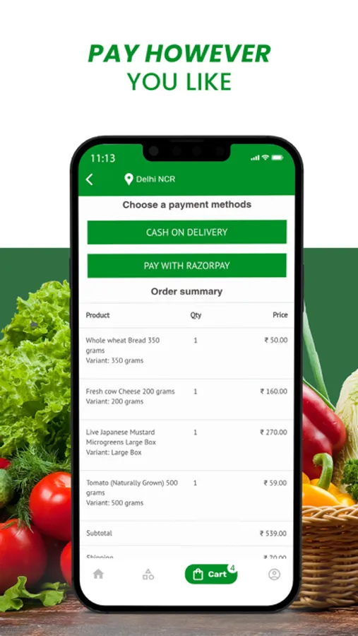 Our core philosophy is “Farm fresh food at your doorstep at the right price”.