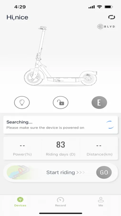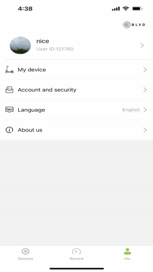 Ability to connect BLVD scooters, set device information, and record ride records. Record the best moments of your every ride!