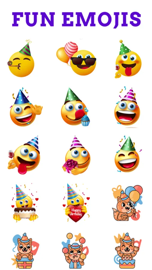 We offer beautiful sets of Happy Birthday Emojis: Fun Emojis, party emojis and birthday wishes and many other beautiful stickers.