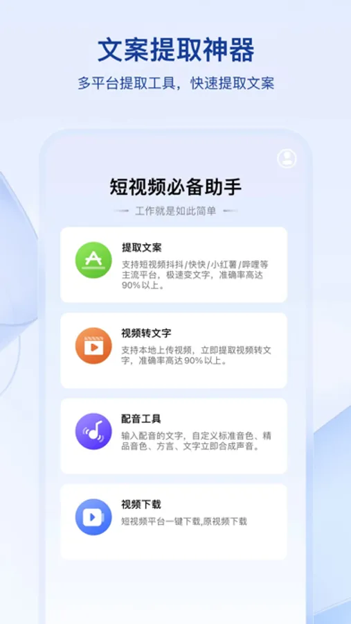 视频转文字工具,是一款专注于短视频(支持抖抖/快快/小红薯等平台)文案提取工具,文字转语音的配音软件,语音合成工具,输入文字秒变各种语音,文案提取工具,音频提取工具