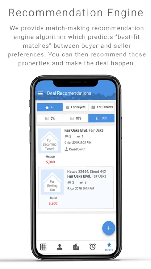 Recommendation Engine -We provide a match-making recommendation engine algorithm that predicts "best-fit matches" between buyer and seller preferences. You can then recommend those properties and make the deal happen.