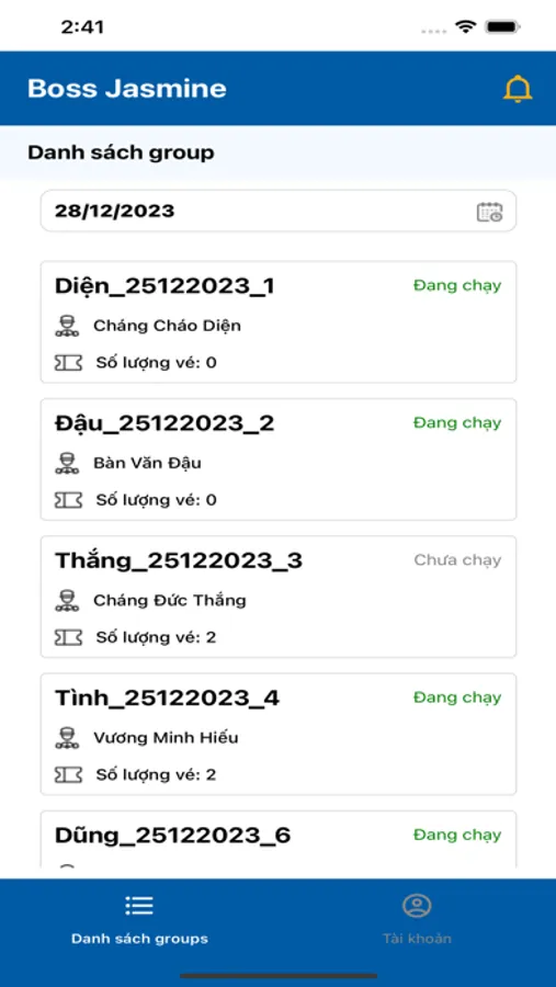 This is the Jasmine travel management app which helps drivers and tour leaders manage their tour and their guests. For a good example, in the 'Dẫn tour' tab tour leaders need to check whether their guests are in a specific activity. In addition, drivers and tour leaders could observe their tours in the 'Tài xế' tab. Furthermore, they could review their monthly money and profile in the 'Tài khoản' tab.