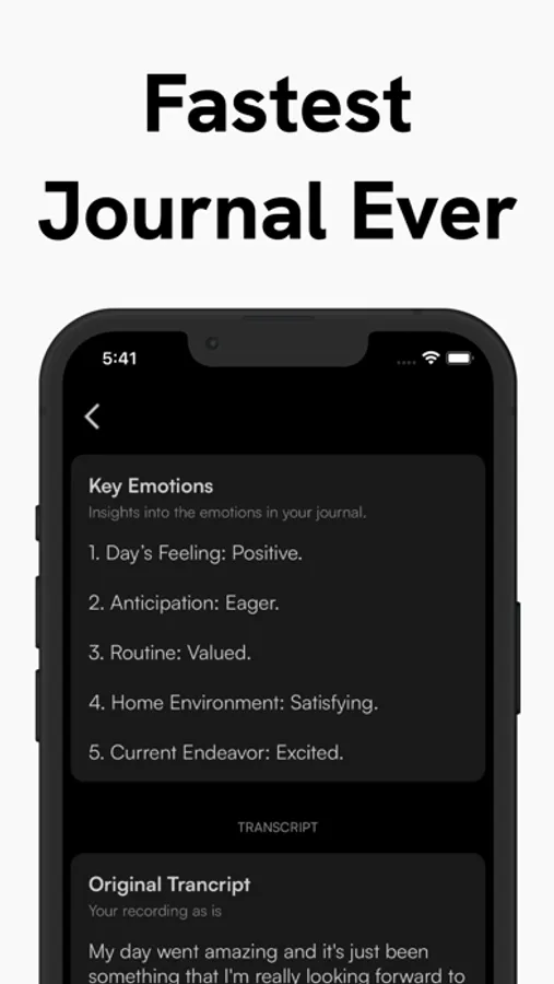 Emotion Highlighting: Not only does Journo transform your voice into text, but it also identifies and tags key emotions and sentiments. This helps you reflect on your emotional journey over time.
