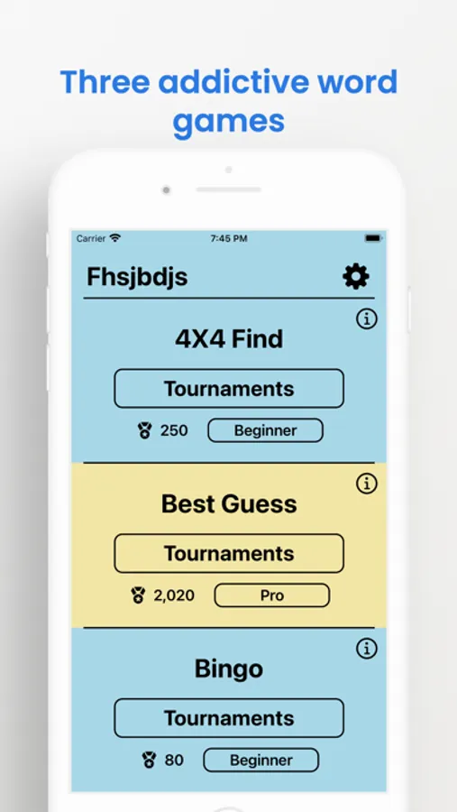 WellWorded hosts a variety of addictive word games. In each of these games, players compete in a tournament style setting and can climb through three different tiers based on skill level.