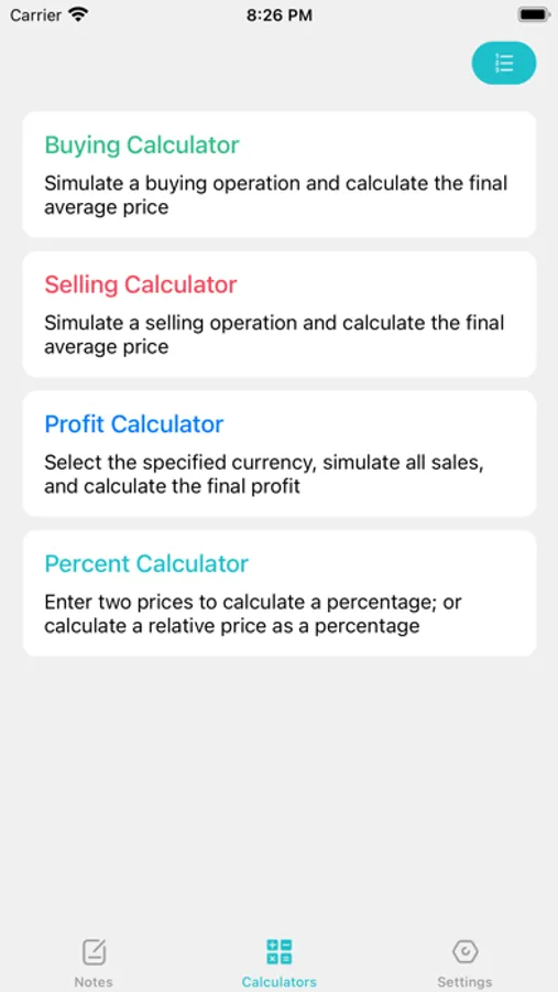 - Built-in currency speculation calculator, which simulates the average price and profit after increasing positions, and helps you verify whether future plans are feasible;