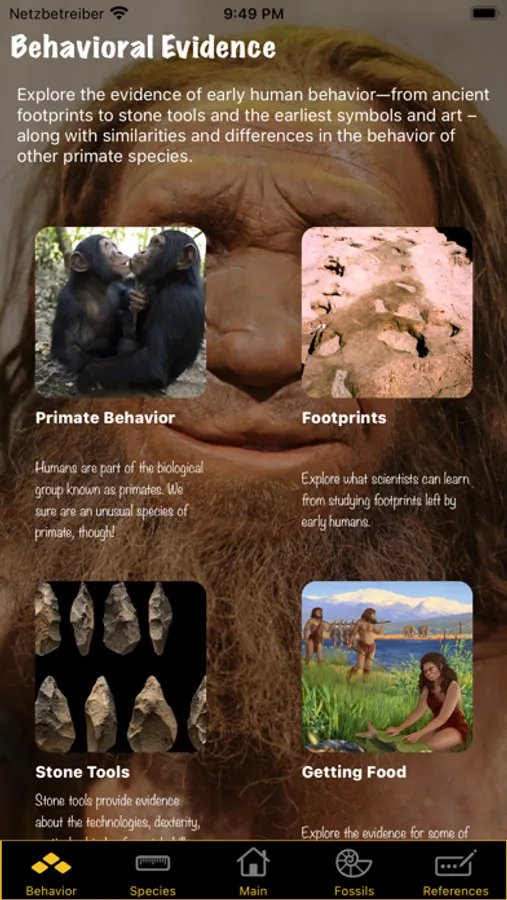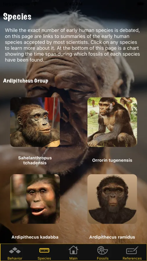 With Human Evolution application, you can access and view a lot of scientific information about to human ancestors and human fossils.