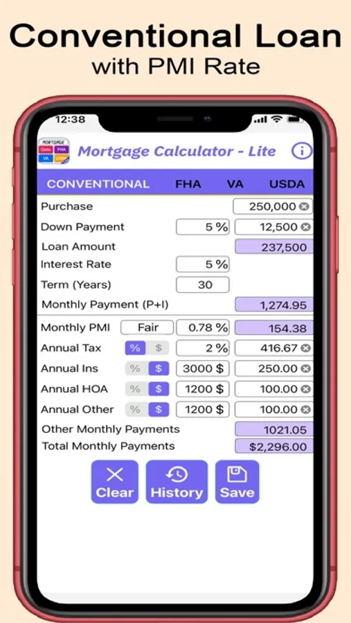 3. Very Quick: It is a fast & reliable app. It calculates four types of loans i.e., Conventional, FHA, VA & USDA, without switching screens or pages or re-entering numbers.
