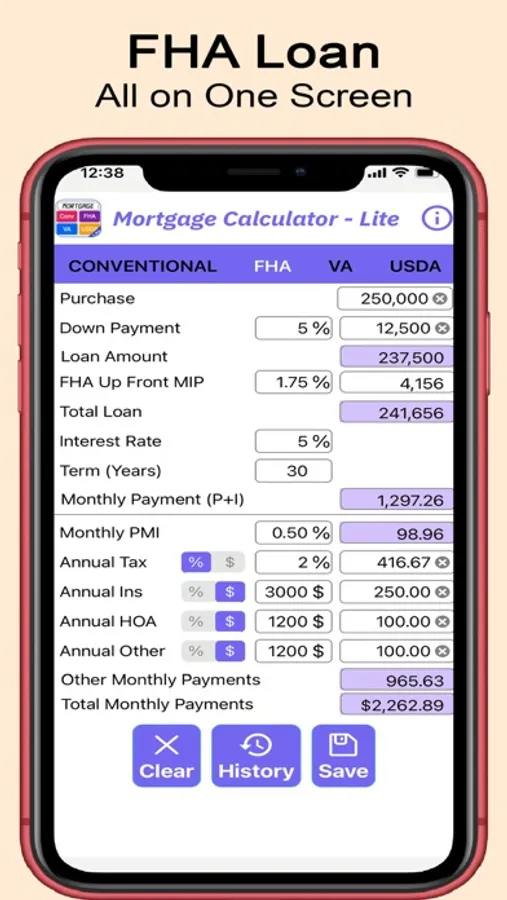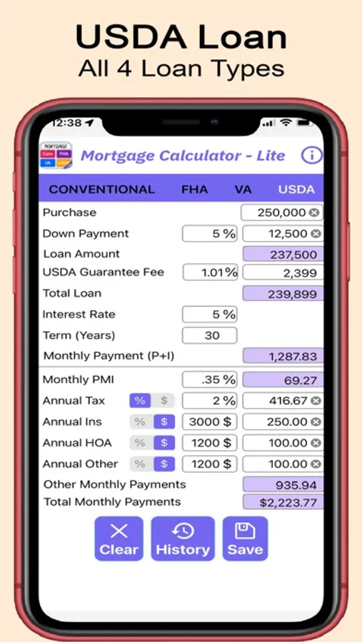 The Loan Payment Calculator calculates four most common loan types: Conventional, FHA, VA, and USDA. It is specially developed for Home Buyers, Realtors, and Mortgage Brokers to calculate the loan easily. The Loan Payment Calculator offers faster and straightforward functionality. Since it is on one screen feature, it saves time and gets the accurate calculation in seconds. The Loan Calculator app is available for iPhone and iPads.