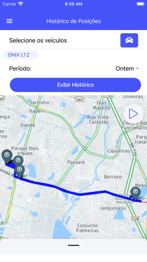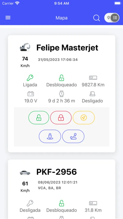 Com o aplicativo instalado no seu smartphone você poderá visualizar em tempo real a localização do seu veículo, além de poder executar ações como bloqueio e desbloqueio remoto do veículo.