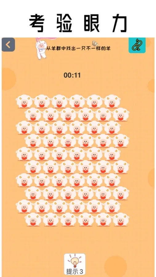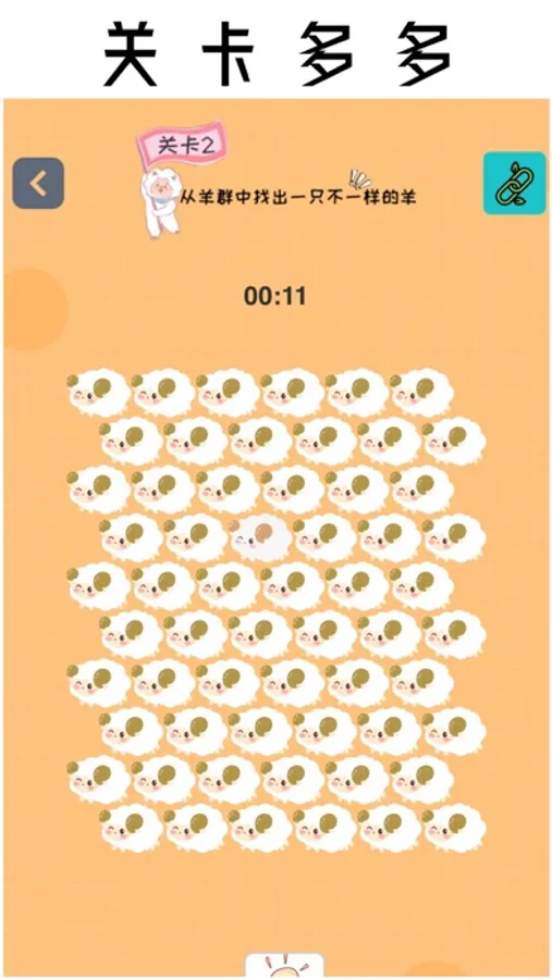 挑战不同的关卡,从羊群中找出与众不同的那只羊就可以通关啦,快来挑战吧,看看你的眼力能挑战几关呢!