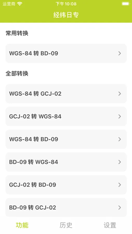 简单让我们更专业。经纬日专专门为用户提供常用的经纬度转换,支持WGS-84 转 GCJ-02、GCJ-02 转 WGS-84、WGS-84 转 BD-09、BD-09 转 WGS-84、GCJ-02 转 BD-09、BD-09 转 GCJ-02等,同时操作支持快速记录与复制,提升日常使用效率。