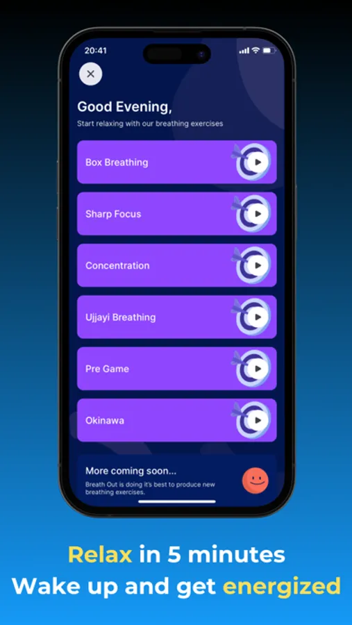 Breathe Out offers a range of unique exercises, including the box breathing, triangle breath, and 4:7:8 breathing techniques. Experience the profound benefits of these time-tested practices and stay tuned for regular updates as we continuously add new exercises and workouts to expand your repertoire.