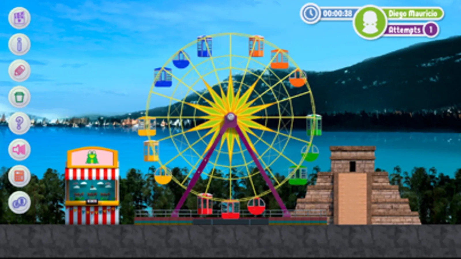 In this simulation, there is a set of different patterns that allow for measurements and interpretations of variations using objects of various shapes and figures from a mechanical amusement park.