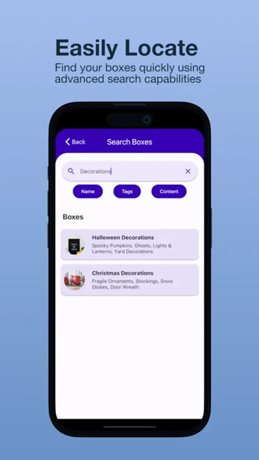 • Search and Filter: Effortlessly search for specific items or filter your boxes by category, name, or any other attribute. Locate your belongings in seconds.