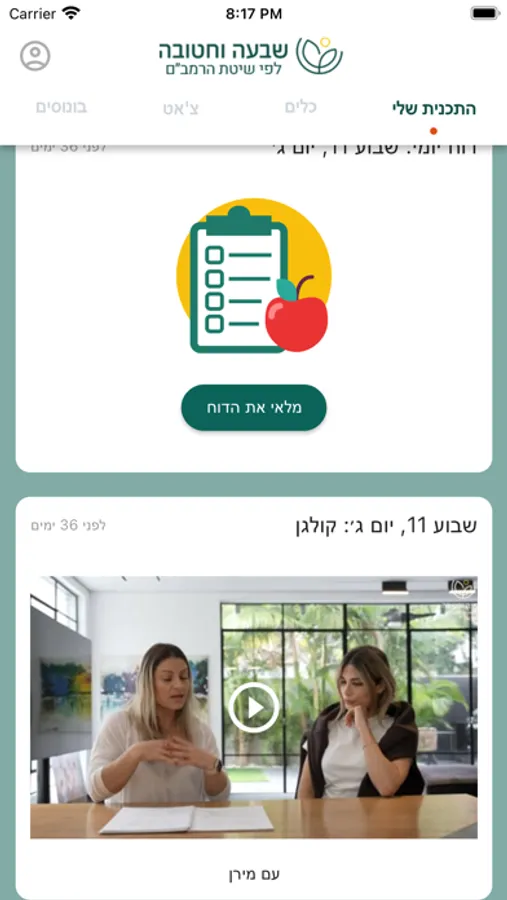 תוכנית התזונה המצליחה בשיטת הרמב״ם, בהנחיית הדס כהן ומירן בוזגלו.