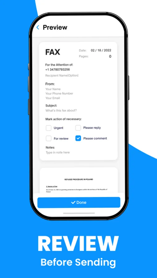 Turn your mobile phone into a high-powered fax machine with Faxio! Say goodbye to clunky fax machines and hello to the convenience of sending faxes right from your mobile device. Effortlessly scan documents using your camera, import files from your device, and send faxes worldwide in just a few taps.
