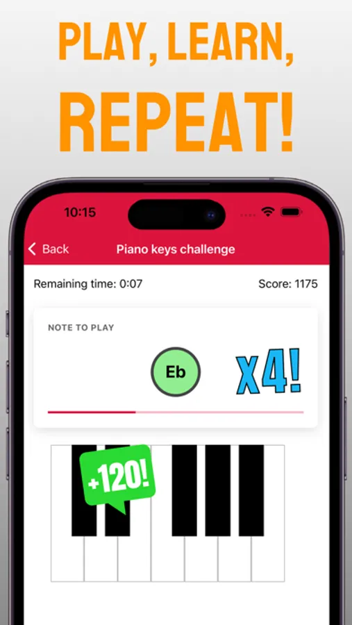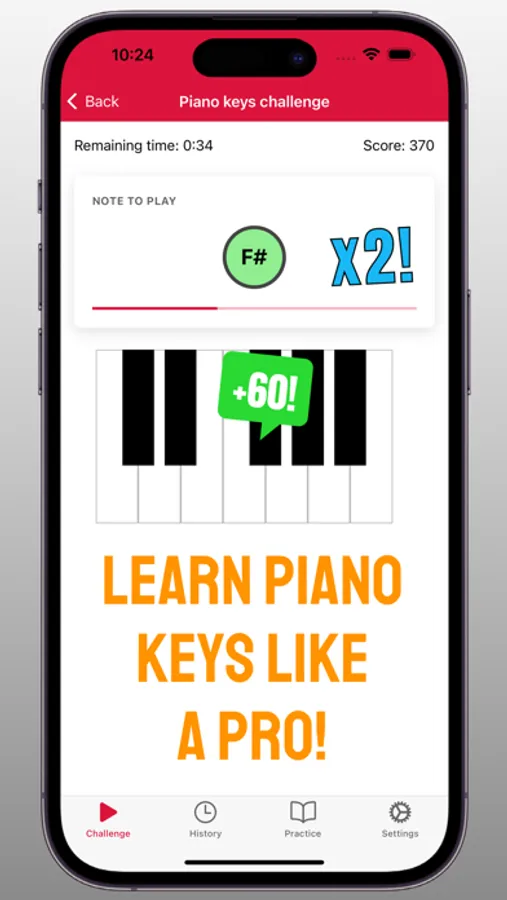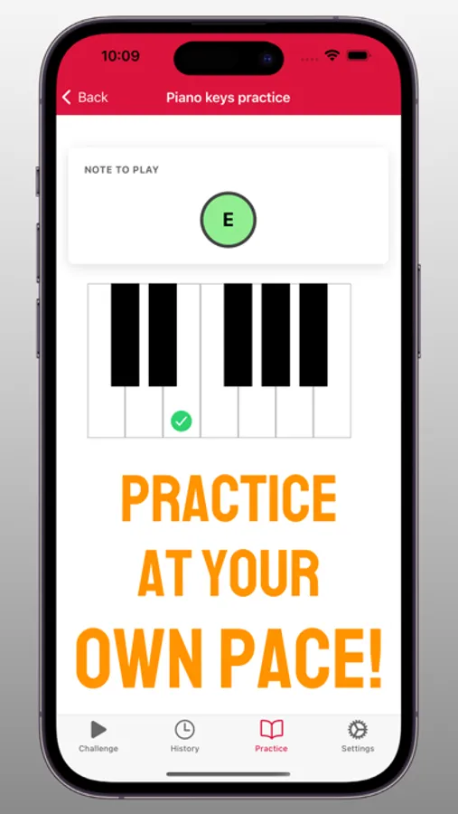 Once you've gained confidence in recognizing the piano keys, it's time to put your knowledge to the test in Challenge mode. Prepare for an exciting and fast-paced experience where you must swiftly identify and tap the correct keys within a given time limit.