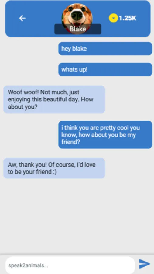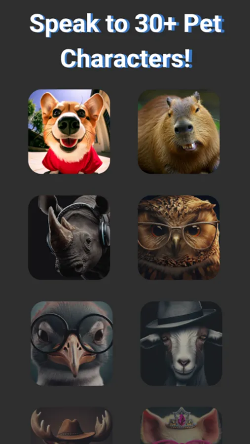 Speak2Pets is an AI-powered chatbot that lets you speak to a variety of silly animal characters! Have full conversations with an animal that has extended memory and will always be up for a fun time! Talk to any of the preconfigured characters or try adding your own pets with the "Custom Pets" feature. Just fill out a quick form, upload your pet's best photo, and you will be able to finally understand what your pet has always been saying!
