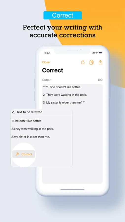 Say goodbye to grammar and spelling errors! Powered by state-of-the-art GPT models, Refext's "Correct" feature analyzes your text and provides accurate suggestions to correct grammar and spelling mistakes. It ensures that your writing is polished and error-free.