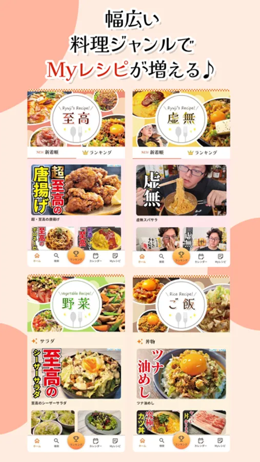 レシピをカテゴリー・タグ別に分類し、ワンタップで気になるジャンルのレシピを見ることができます。