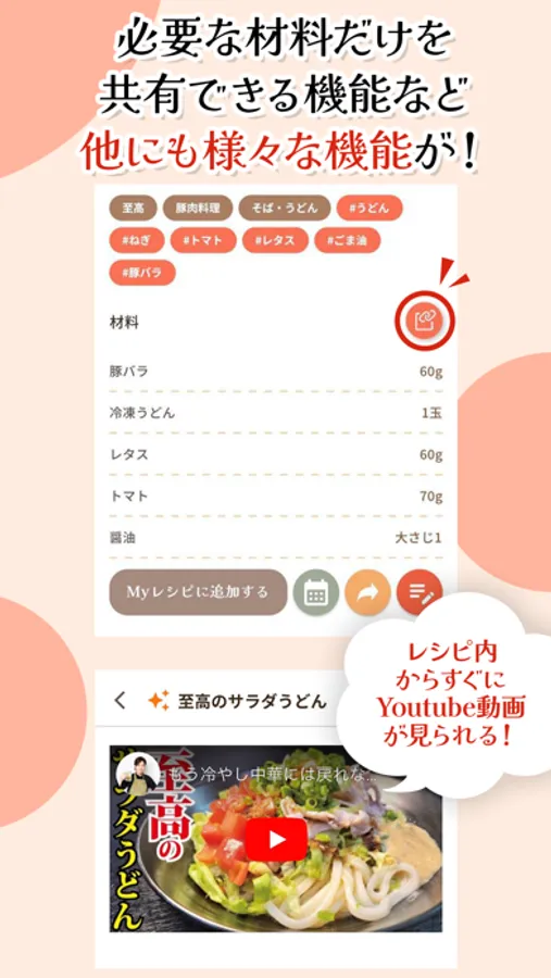 【レシピをフォルダに保存してお気に入りレシピを作れる】