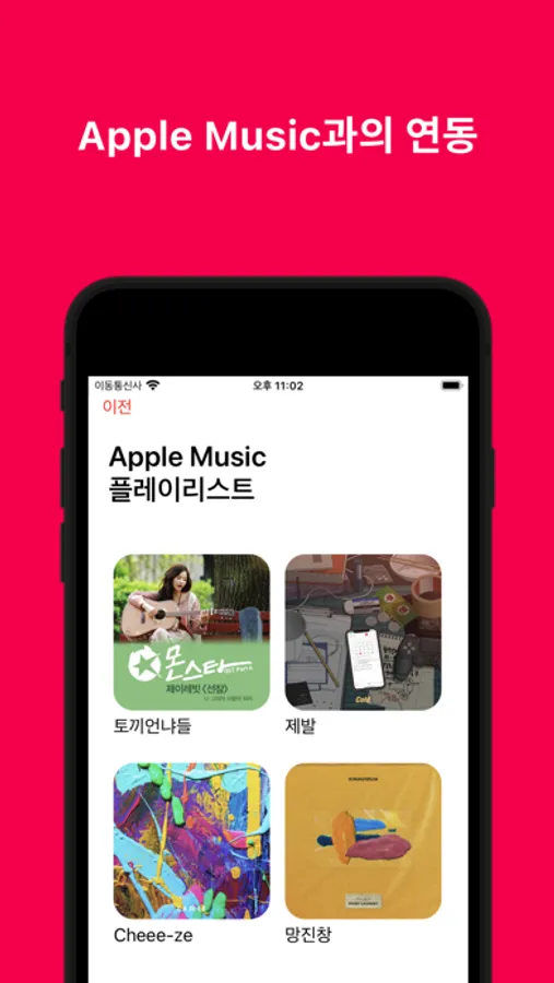 Apple Music과의 연동을 통해 별도 로그인 없이 나의 트랙 리스트를 불러올 수 있습니다.