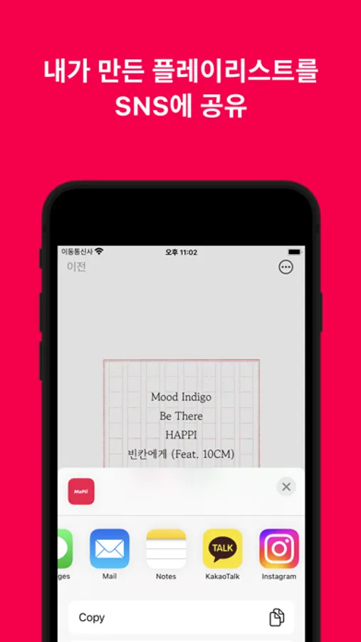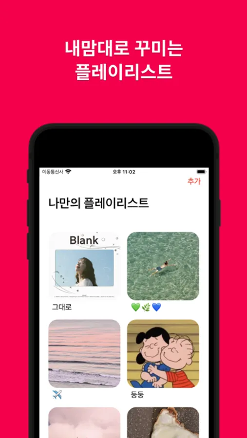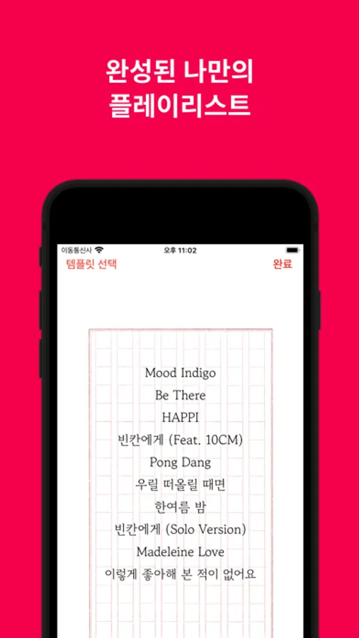 나의 뮤직 트랙 리스트를 앱에 기본으로 제공되는 템플릿을 활용하여 꾸미고 그 트랙리스트를 공유할 수 있는 앱입니다.