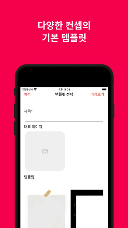 앱에서 기본적으로 제공되는 템플릿은 칠판, 원고지, 카메라 필름 등의 다양한 컨셉들이 준비되어 있습니다.