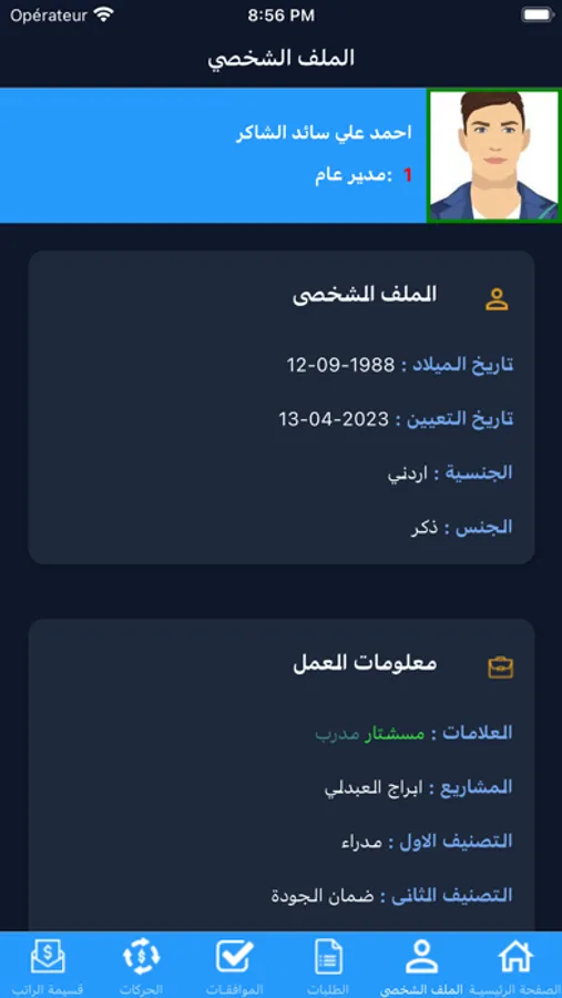 - Allow employee to view his information like personal, financial, banks, address and contacts info.