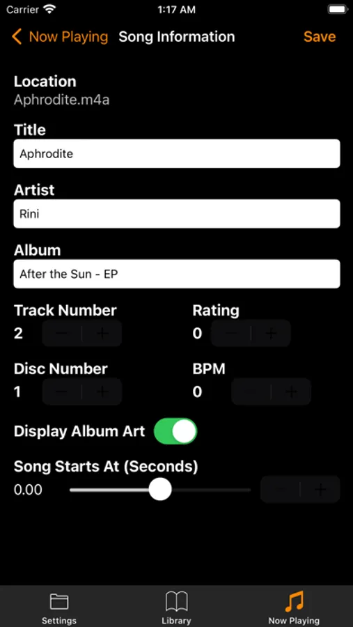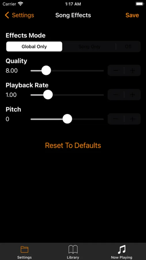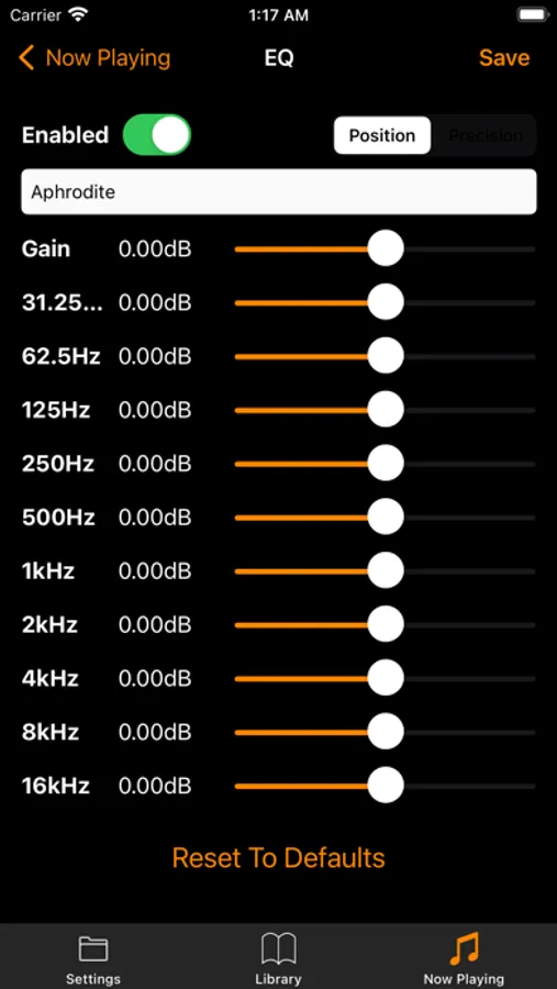 • Global and per-song EQ (yes, each song can have its own EQ settings).