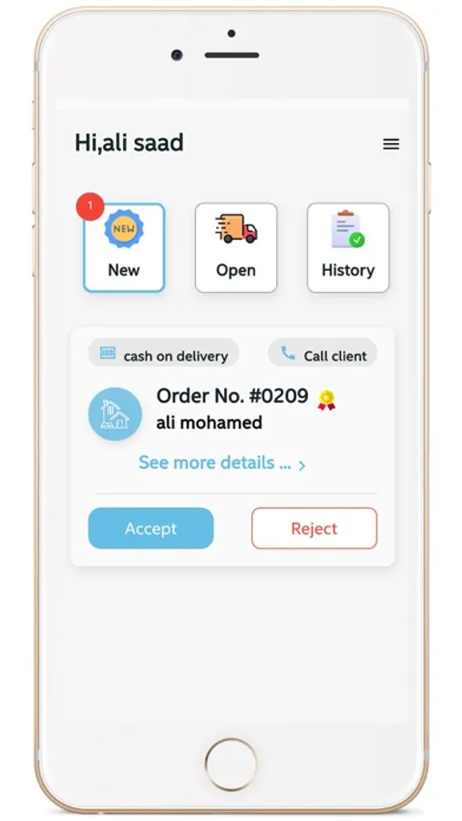 تتميز واجهة التطبيق بتصميم بسيط وسهل الاستخدام، حيث يمكن لسائقي التطبيق تنفيذ العمليات بسهولة ويسر. يتم توفير خيارات واضحة ومنظمة للطلبات والتوصيلات والمعلومات اللازمة للعملية بشكل عام
