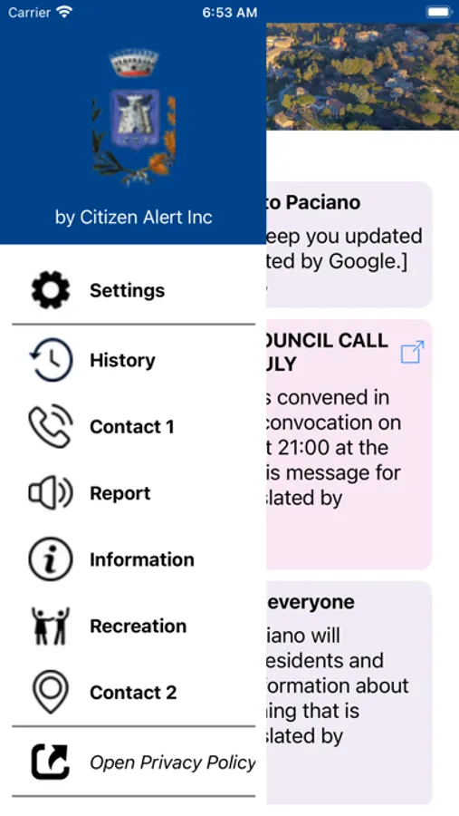 The communication hub of your community. Get all the information you need from your municipality, including recreation, events, road closures, and power outages. Receive vital, useful information, alerts, and notifications from your community on your mobile device at any time and from any location. Know the facts that are important to you right away. Using the settings page, choose what information you want. A simple interface displays current notifications as well as a history of prior notifications. To get news, calendars, event information, and so on, use the buttons on the main page. You may also use the report page to transmit essential information to your community, such as street lights.
