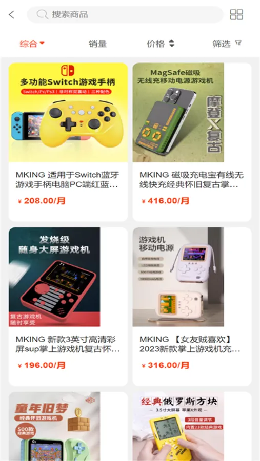 一站式游戏机租赁,支持多种游戏机型号,掌机、ps、vr设备等,可以选购喜欢的游戏机相关装备,也可以按月租赁购机,轻松在线下单