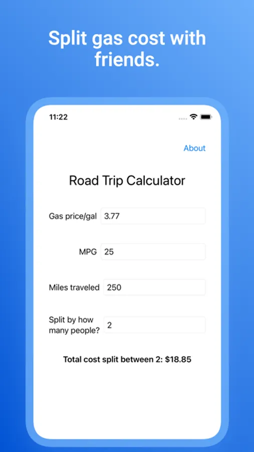 3. Split Costs with Friends: Additionally, the Simple Trip Calculator app offers a handy feature that allows you to split the estimated gas costs with your friends. If you're traveling with others and want to share the expenses evenly, the app enables you to input the number of friends or passengers who will be joining you on the trip. It then divides the total cost accordingly, providing each individual's share of the gas expenses.