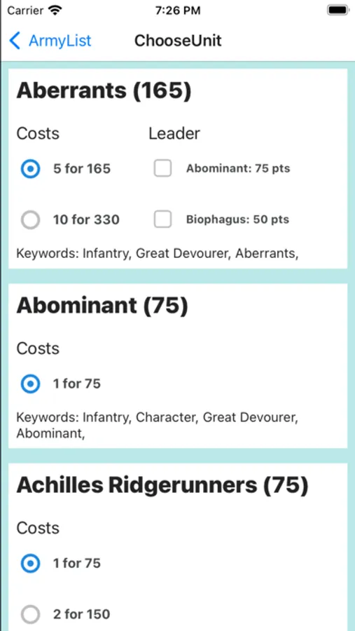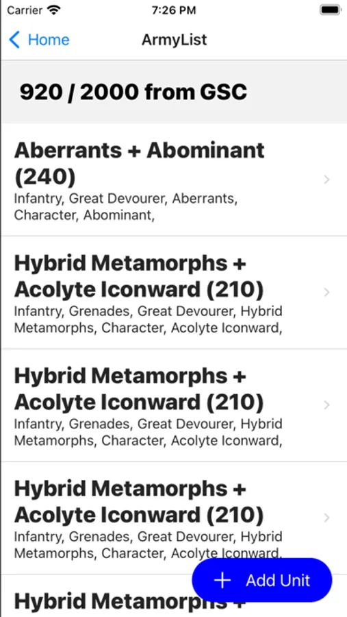 Army List Builder Screenshots