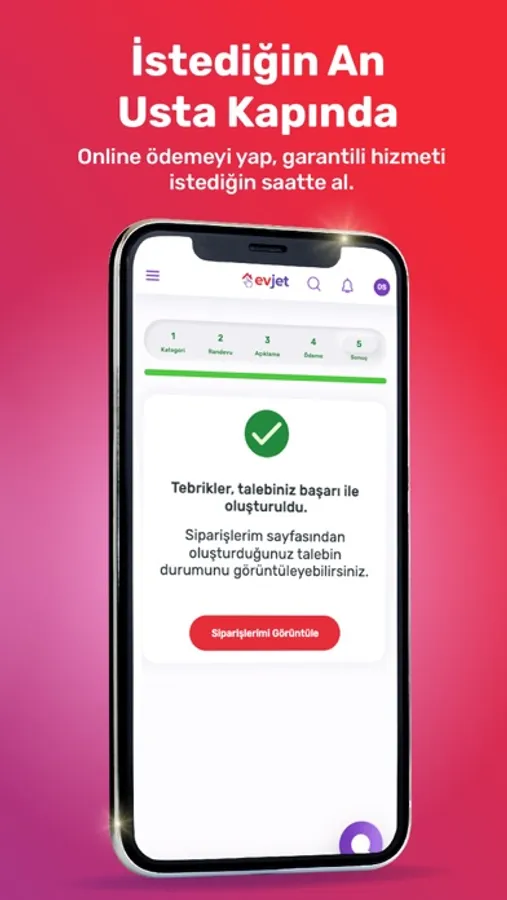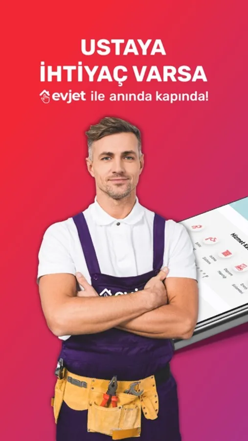 Bu ve daha fazla hizmet için tek yapman gereken Evjet uygulamasını telefonuna indirmek. Ev ve iş yerinde herhangi bir sorunla karşılaştığında Evjet’e gir, problemi ortadan kaldıralım.