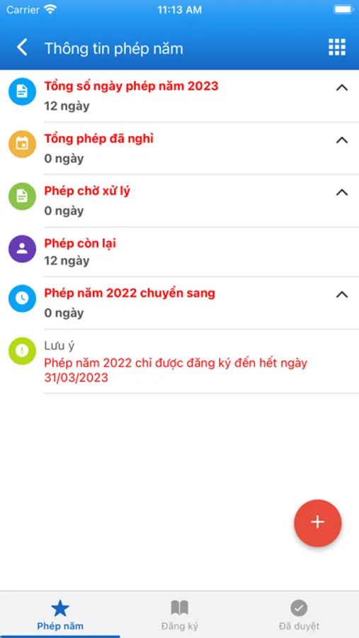 - Đăng ký và theo dõi lịch nghỉ phép.